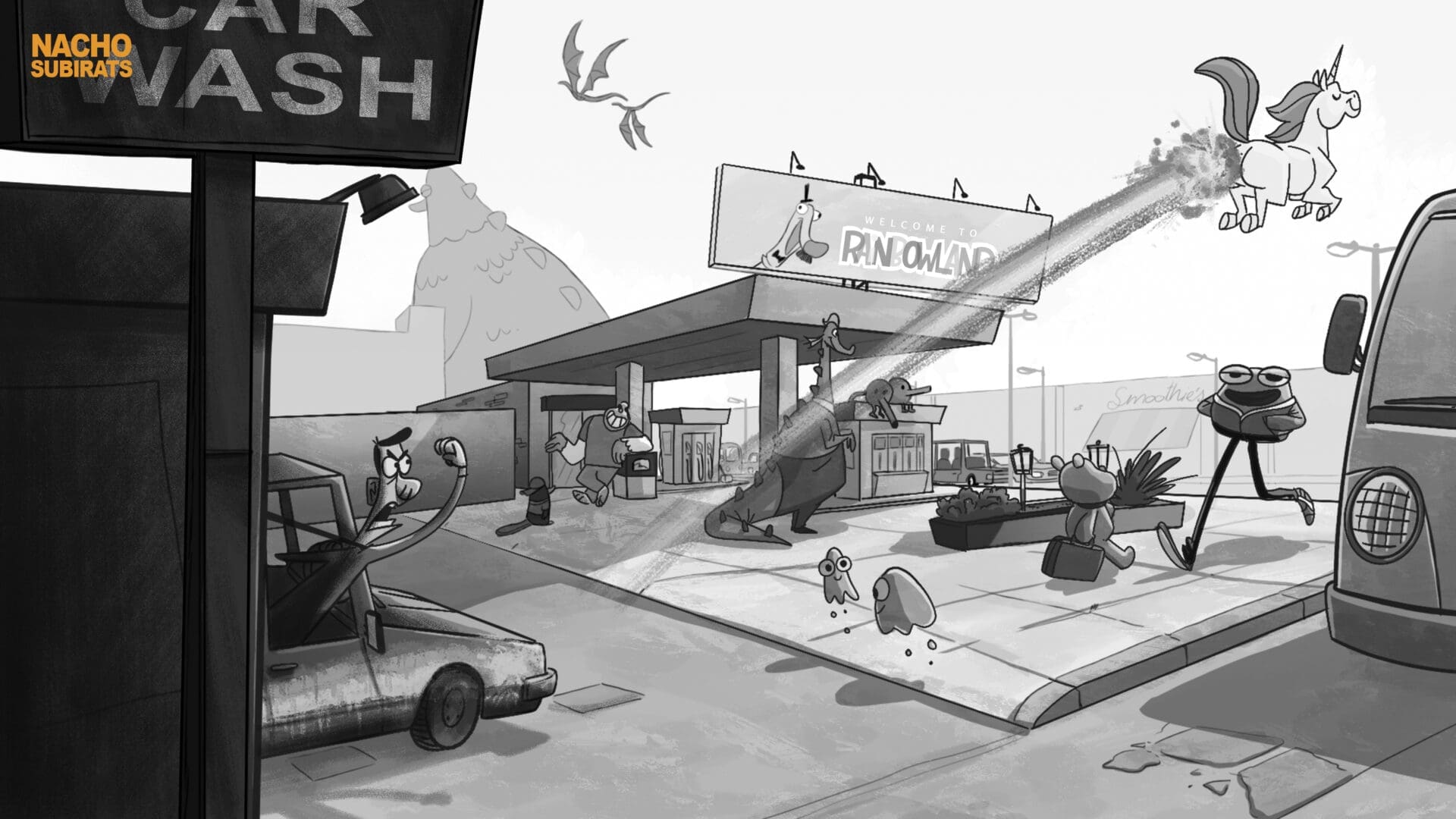 Además, Nacho ha colaborado como animador en cortometrajes, videoclips y series de animación. Candidato a mejor corto de animación en los Premios Goya 2021 con Oldie but Goldie. Ha sido premiado junto a Nuño Benito a “mejor proyecto de serie de joven creador” por el proyecto de serie animada Welcome to Fucking Rainbowland en la pasada edición del WEIRD Market. Actualmente, compagina su trabajo como ilustrador freelance con varias editoriales y empresas e imparte clases de animación en ESDIP.
