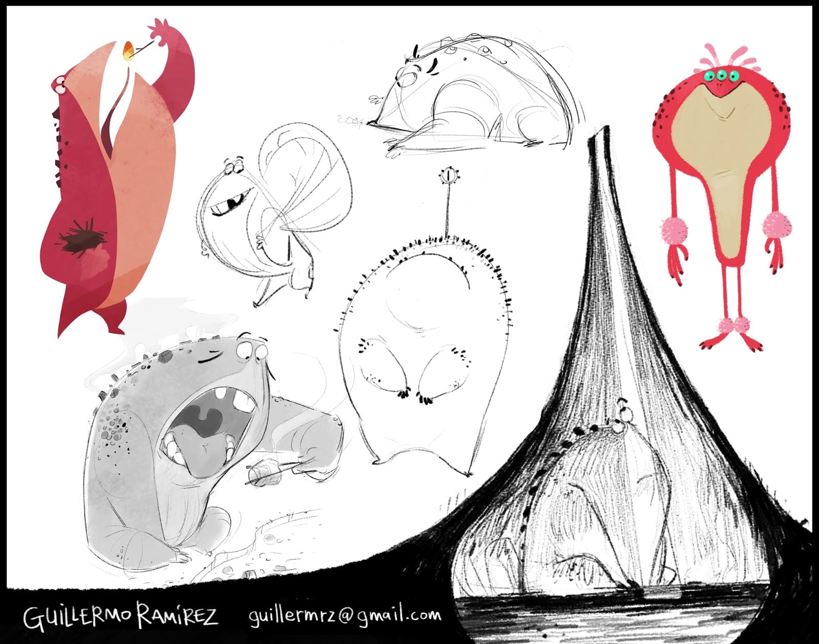 Hoy os traemos el arte de Guillermo Ramírez, una mala bestia del color y el diseño de personajes para animación. Un buen ejemplo sobre la influencia del color en la personalidad y la caracterización. Es profesor del Curso de Diseño de Personajes de la universidad U-tad (que por cierto, os recomiendo).